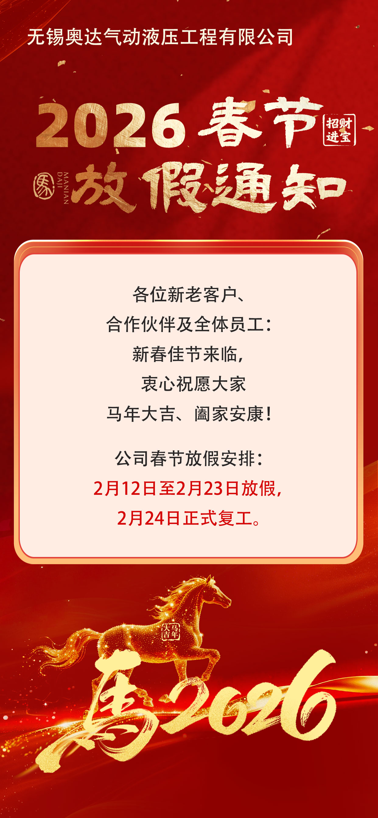 2026年春节放假通知